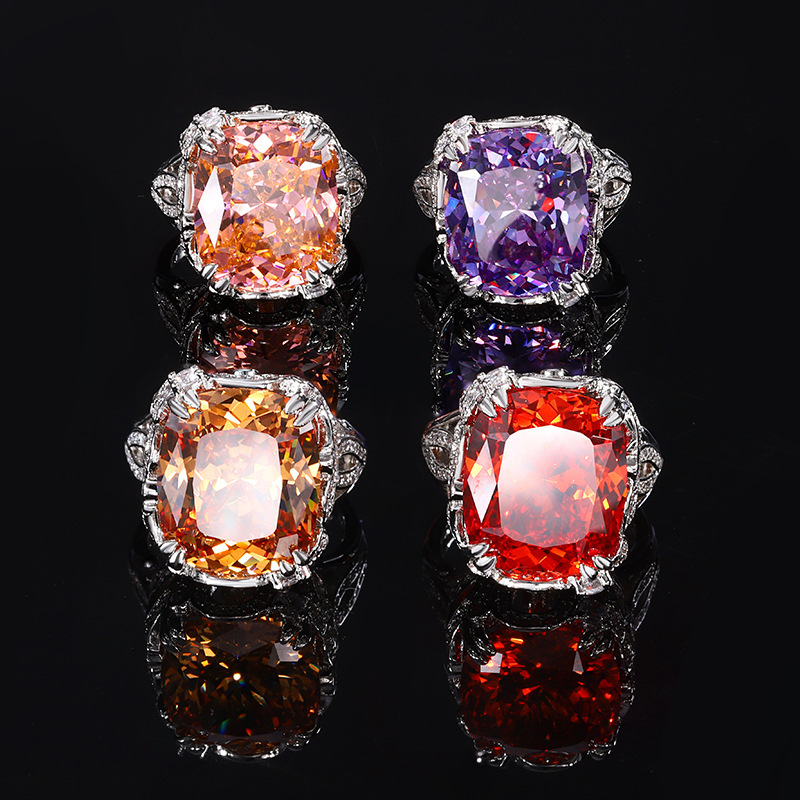 Huabi Jewelry Copper Bottom Gold Plated Retro Fashion Simulation Bird's Nest Cut Color Treasure Fat Square Light Luxury Ring Women 14*16