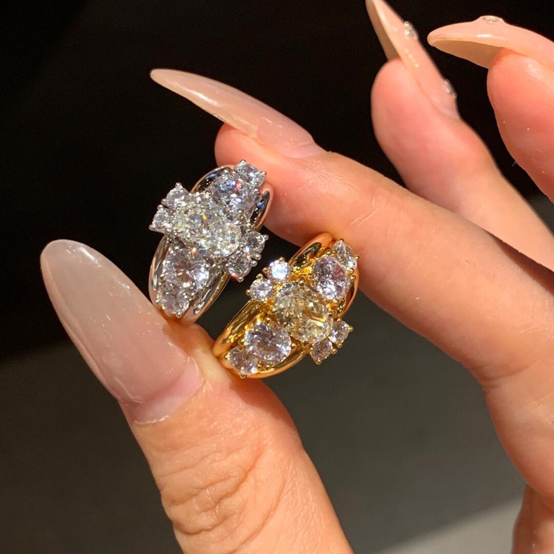 Cross-Border Internet Celebrity Hot Selling New Classic Six-Claw Luxury Group Diamond Ring Full of Diamonds European and American Popular Women's Ring Jewelry Wholesale