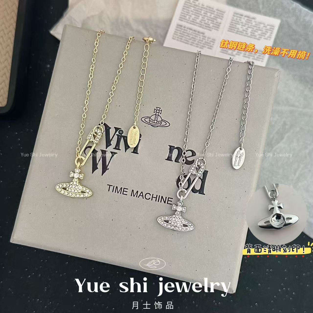 [True Same Edition] Empress Saturn Pin Pearl Full Diamond Necklace for Women High-End Light Luxury Clavicle Chain