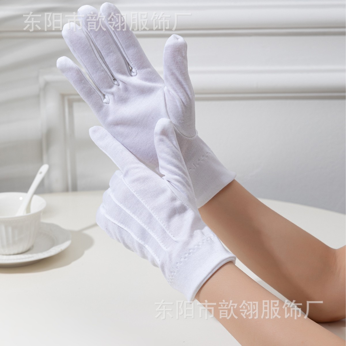 Cotton Three-Rib White Ceremonial Gloves Luxury Jewelry Black Jewelry Gloves Three-Rib Buckle Traffic Duty Gloves