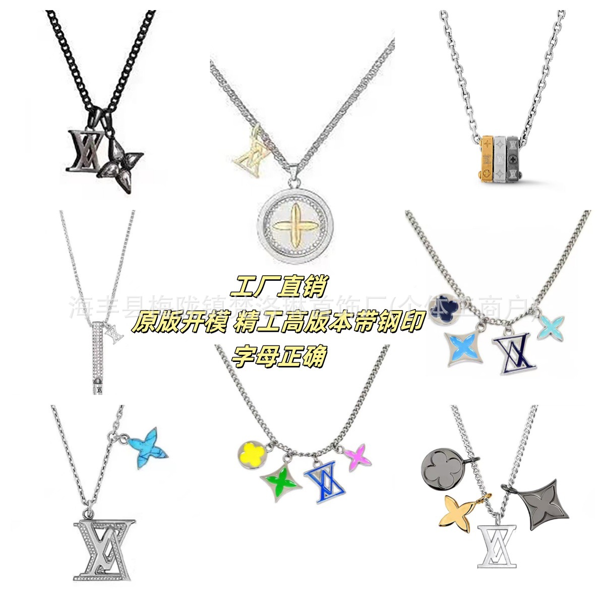 Donkey House Classic Letter Necklace L Brand Fashion Trendy Couple Unisex Turquoise Pendant Clavicle Chain