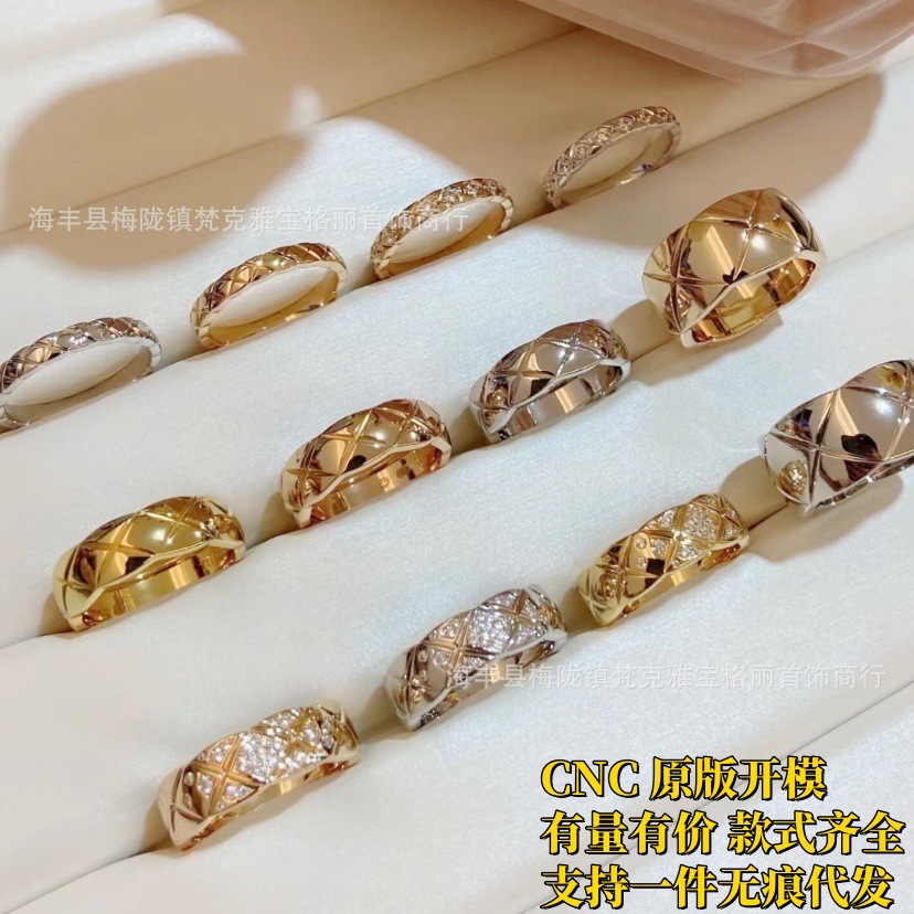 High Version Coco Quilted Ring Cncv Gold Carved Original Single Quality Wide and Narrow Couple Ring Manufacturer Direct Sales and Delivery