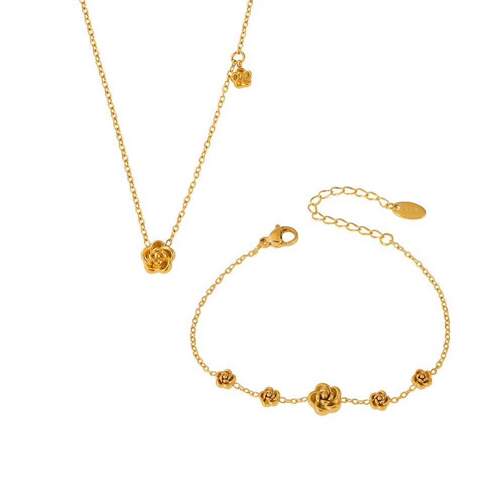 French Romantic Camellia Necklace Accessible Luxury Exquisite Retro Niche Titanium Steel 18K Gold Clavicle Chain Personalized Bracelet Set