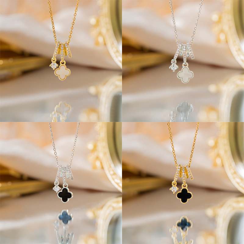 [Copper Inlaid with Zirconium] Cross-Border Four-Leaf Clover Shell Necklace, High-End Light Luxury Women's Floral Simple Versatile Sweater Chain Jewelry