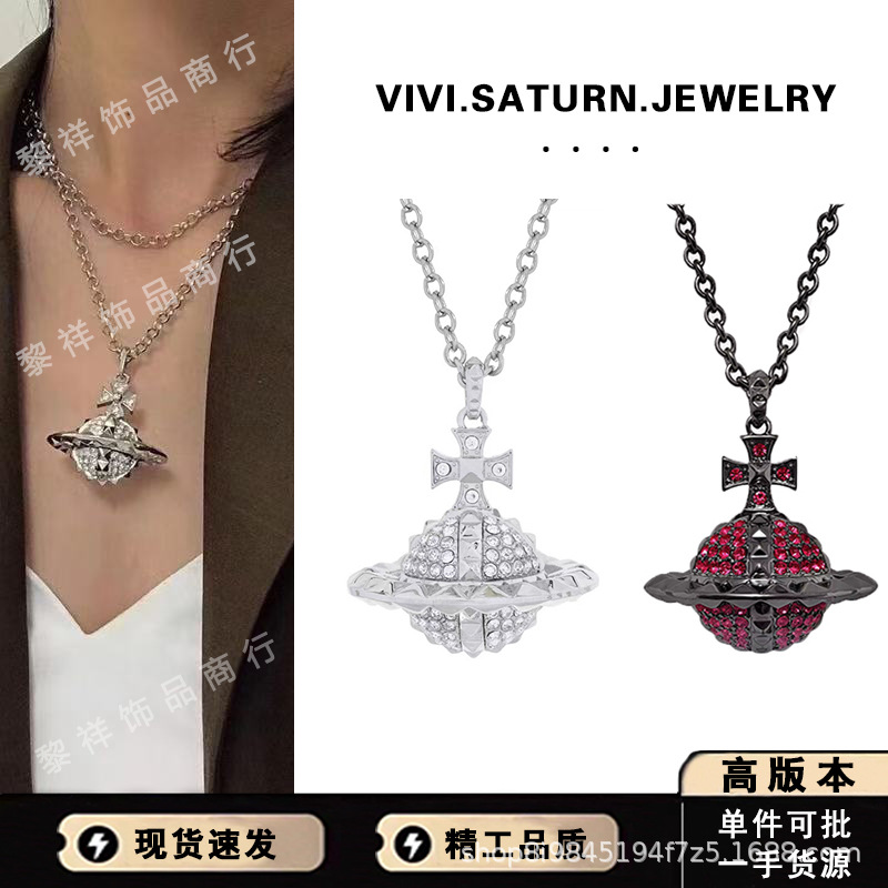 High Version Queen Mother's Large Three-dimensional Rivet Saturn Necklace Light Luxury All-match Diamond Planet Clavicle Chain