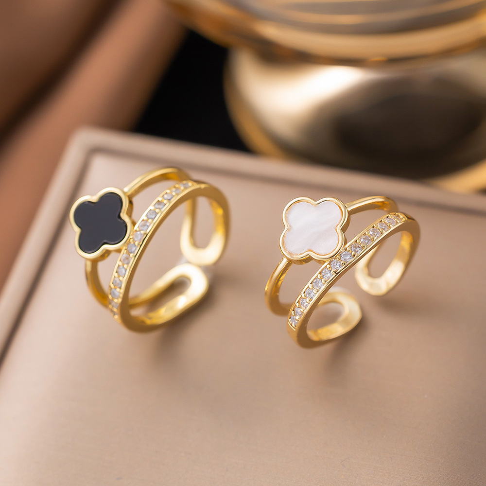 [New Ring] European and American Cross-border New Entry Luxury Niche Zircon Four-leaf Clover Ring ins High-end Sense