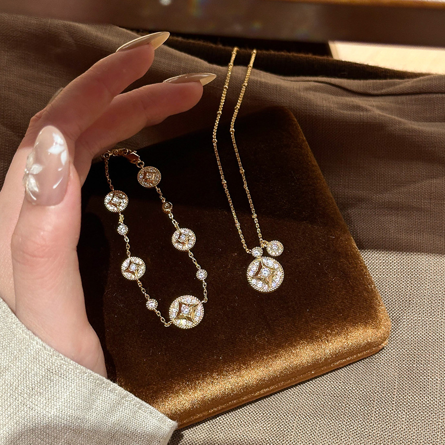 18K Real Gold Electroplated Zircon Round Necklace Accessible Luxury Exquisite Versatile Clavicle Chain Fashionable High-End Necklace Wholesale
