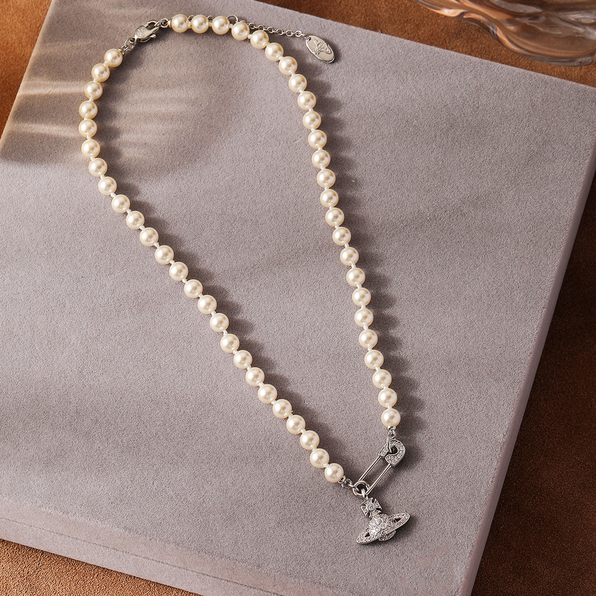 Classic Diamond Queen Mother's Pearl Necklace Pin Vintage Clavicle Chain Fashion Niche Light Luxury Saturn Necklace Bracelet
