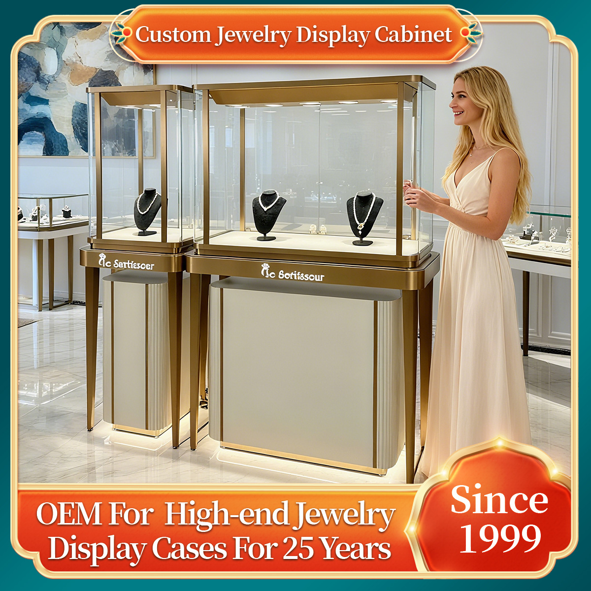 Brand Flagship Store Jewelry Display Cabinet High-End Diamond Jewelry Glass Display Cabinet Luxury Bag Display Cabinet Customization
