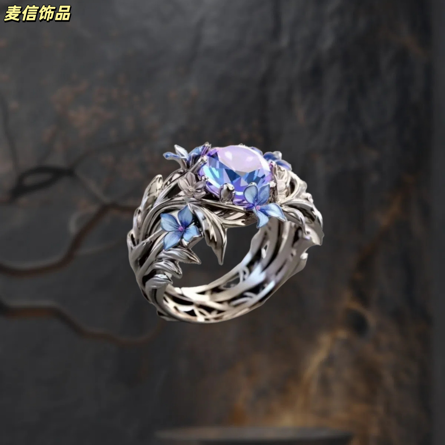 Cross-Border Environmentally Friendly Copper Zircon Tail Ring, Stylish and Luxurious, Popular Sapphire Ring, Women's Jewelry Wholesale