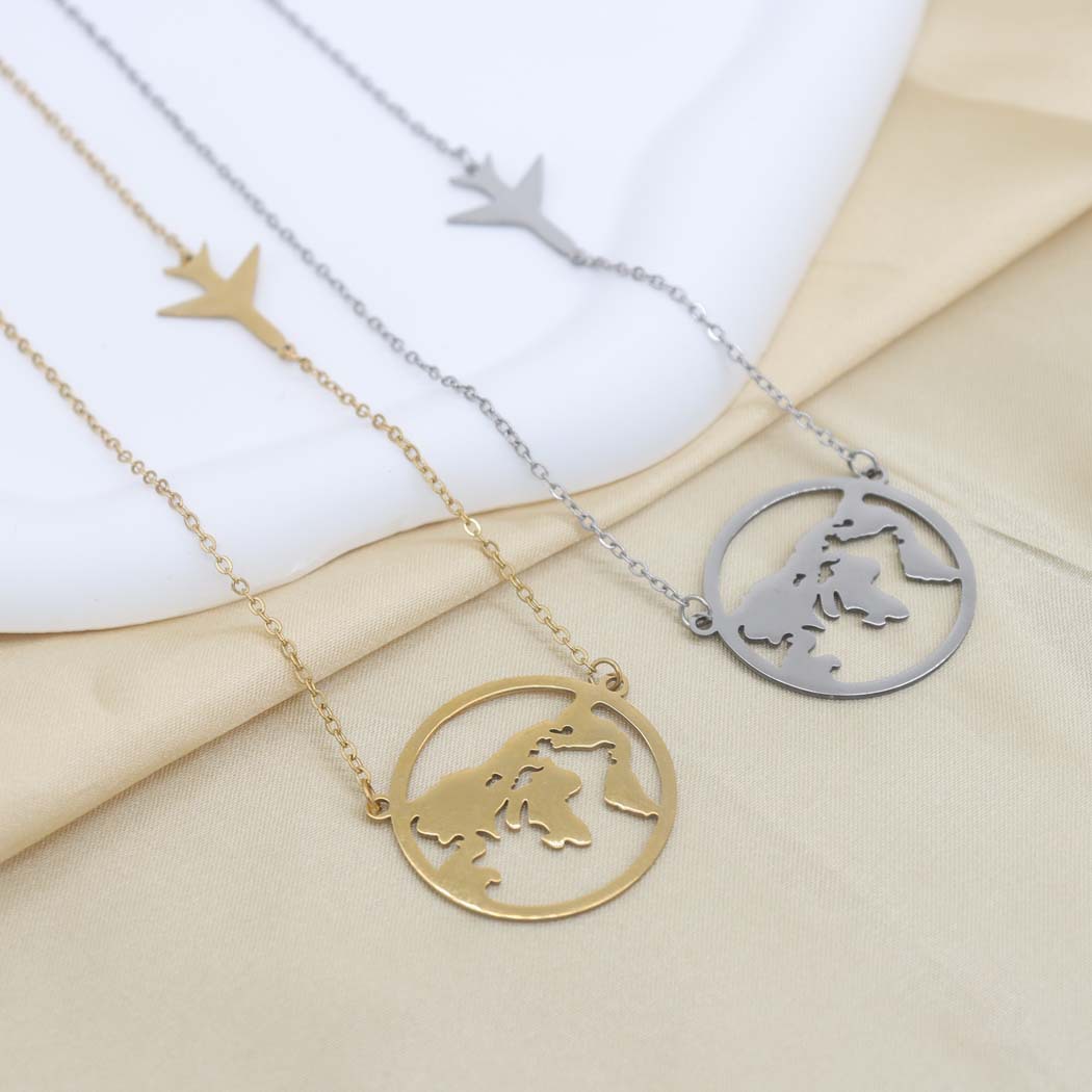 Global Map Plane Pendant Necklace Woman Traveler Necklace Simple Jewelry Man Friendship Necklace Gift