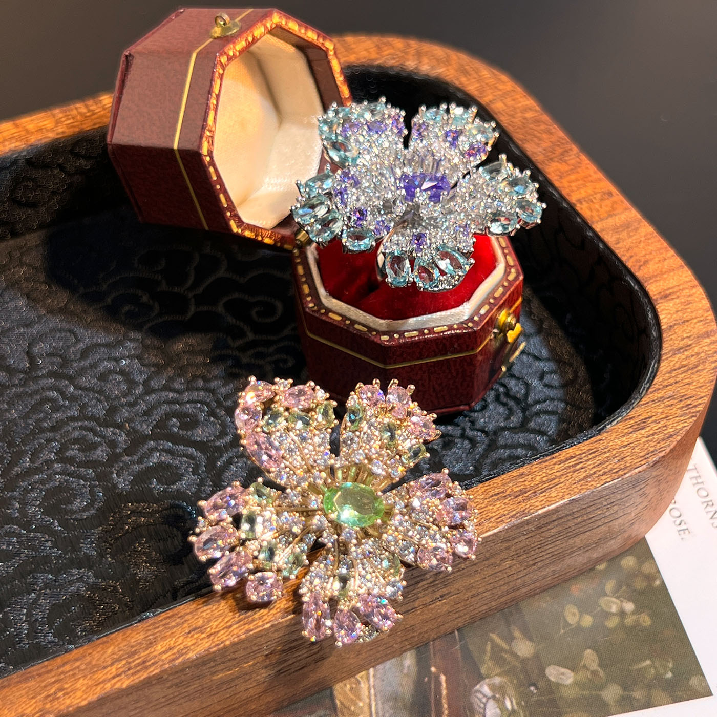 Light Luxury Jewelry Zircon Flower Ring High-End Inlaid Fashion Cross-Border Ins Fashion Versatile Open Ring