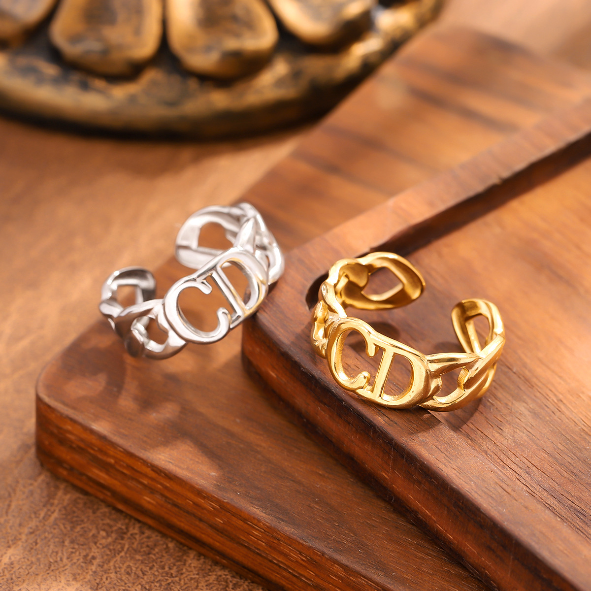 Fashionable European and American Style Cd Letter Ring, Light Luxury, Simple and High-End Hollow Smooth Open Fashion Ring