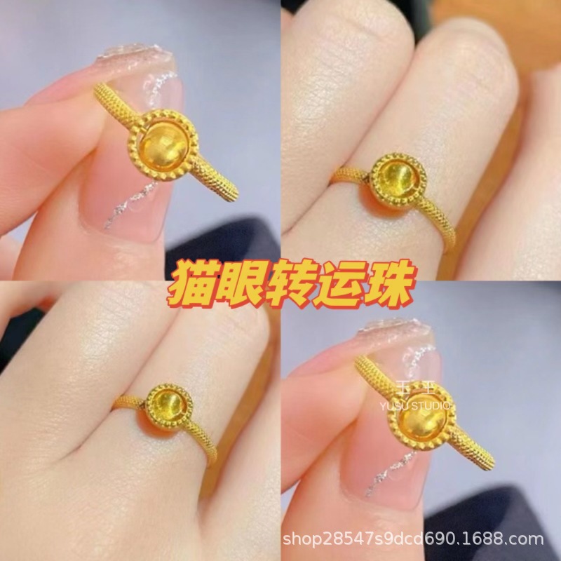Gold Store's Same Style Ancient Gold Cat's Eye Fortune Bead Ring, Adjustable, Good Luck, Fashionable, Simple, Versatile, Chinese Style