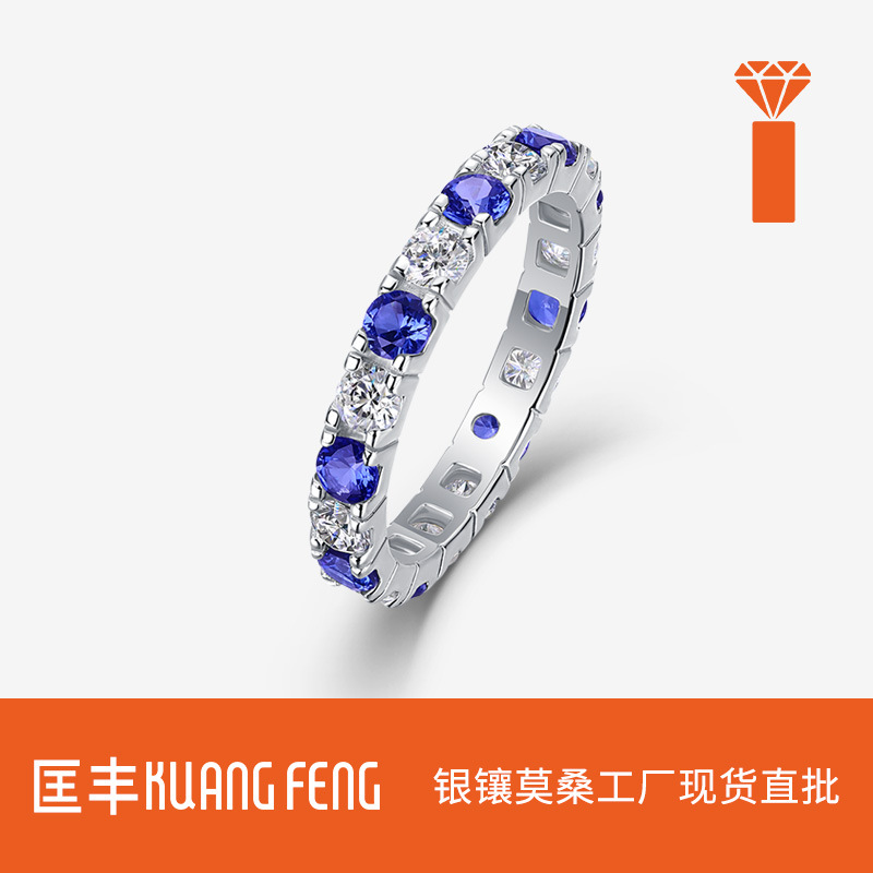 Light Luxury and High-End Elegant S925 Silver Ring for Women Green Sapphire Red Sapphire Cross-Border Hot Sale New Moissanite Ring