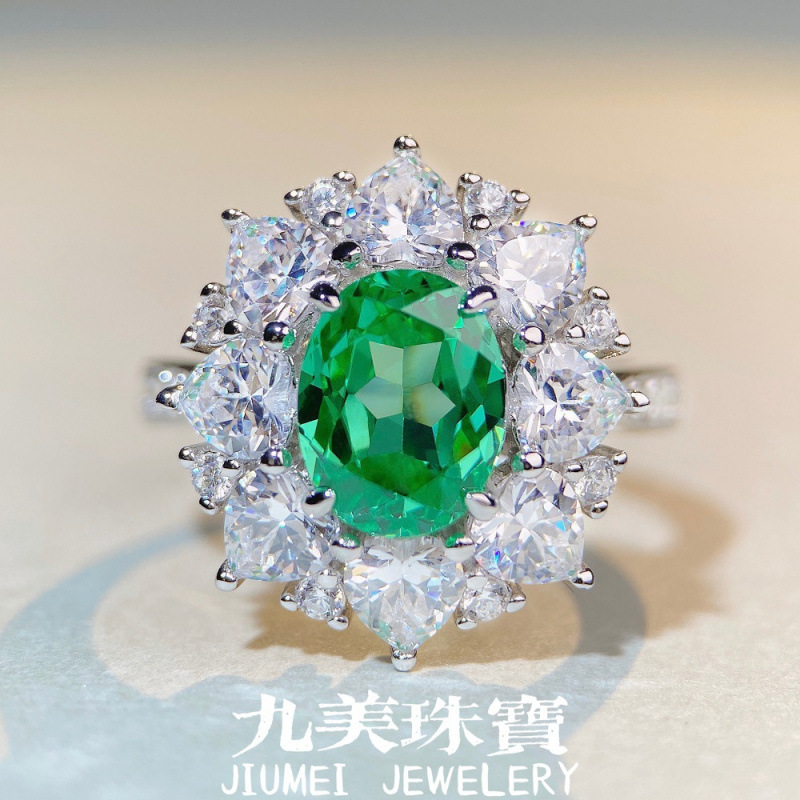 Paraíba Green S925 Sterling Silver Ring Women's High Sense Luxury European and American Love Pigeon Egg Ring Wholesale