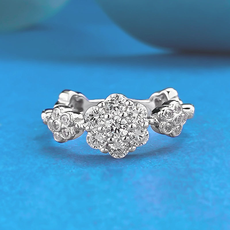 Xizhuo Jewelry's New S925 Silver Five-Flower Row Ring Multi-Faceted Wearable Flower-Shaped Luxury Jewelry-Like Row Ring