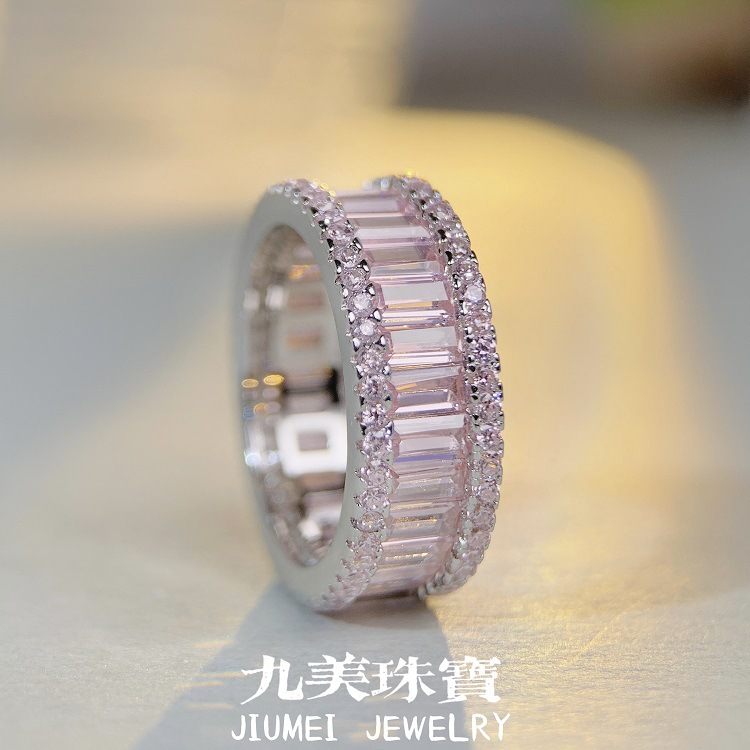 Amazon cross-border explosions s925 sterling silver ring women's wholesale full of pink diamond luxury high-end feeling row ring diamond ring
