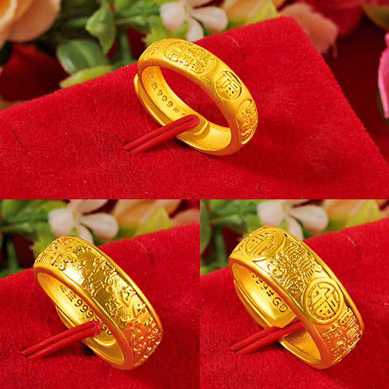 Vietnam Shajin 1;1 Gold Store with Baifu Opening Ring Retro Folk Style Fashion Couple Ring