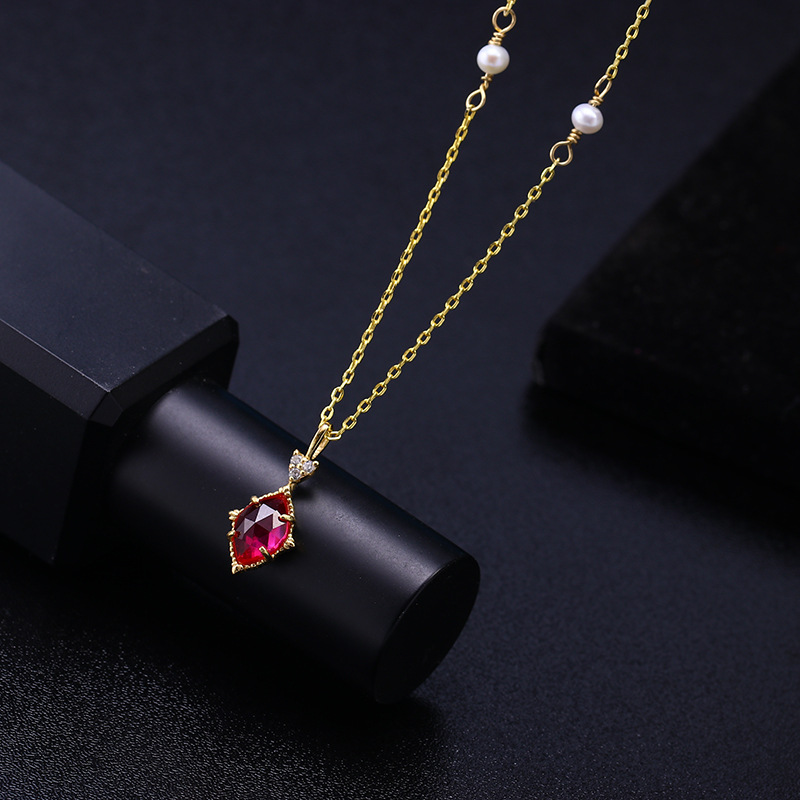 ins Light Luxury Chanel Style Necklace agete Red Gemstone New Style Pendant 925 Silver Gold Plated Natural Pearl Necklace