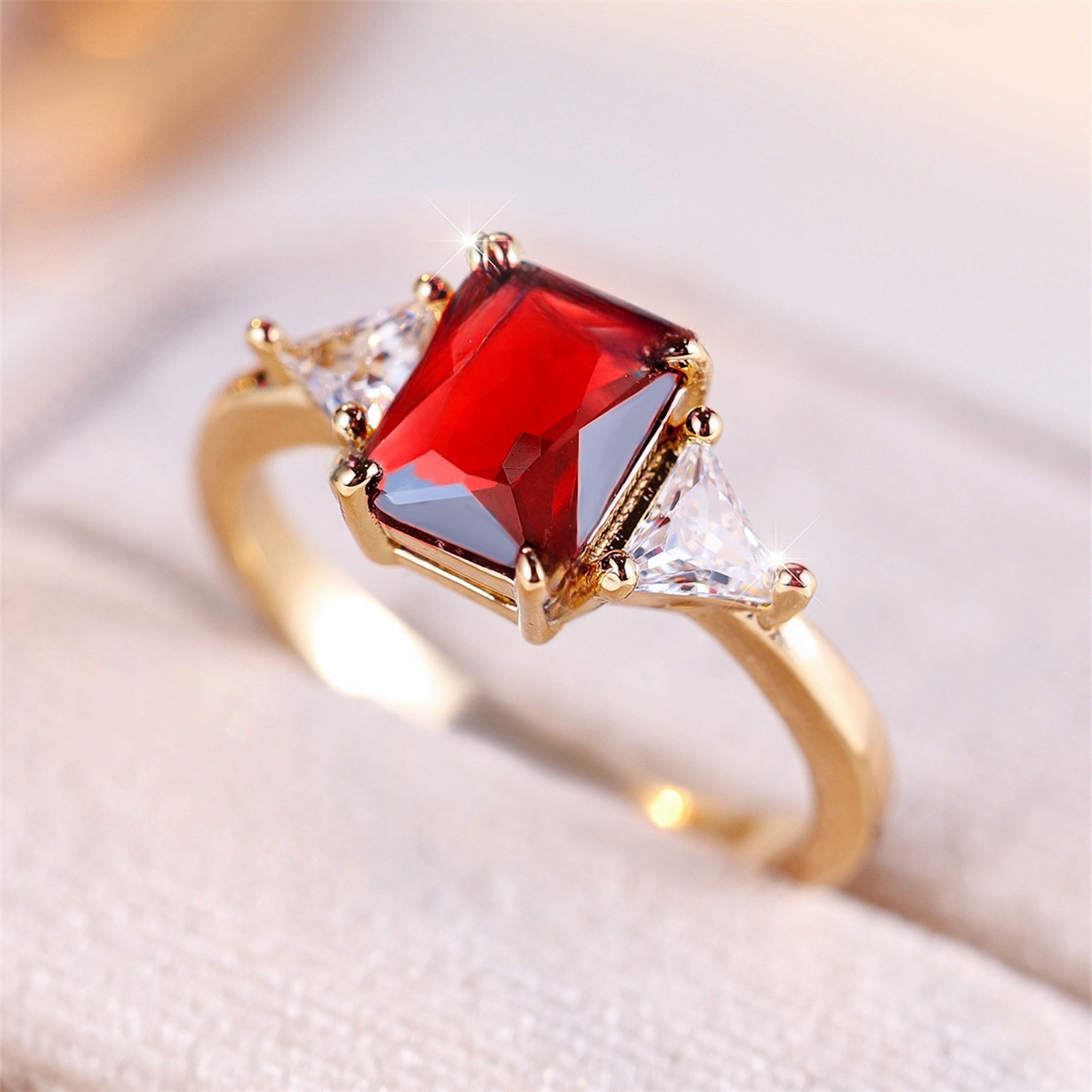 New temperament high-end group inlaid zircon simulation Red tourmaline color treasure opening ring Women's loose mouth ring jewelry wholesale