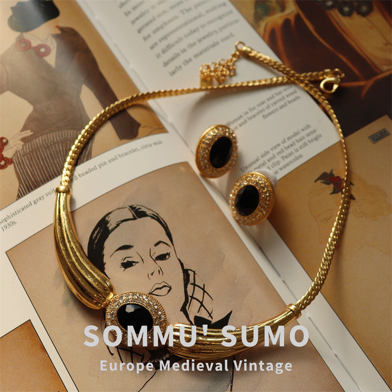 Classic French emerald vintage necklace women's 18K gold green diamond titanium steel high fashion design neck chain clavicle chain