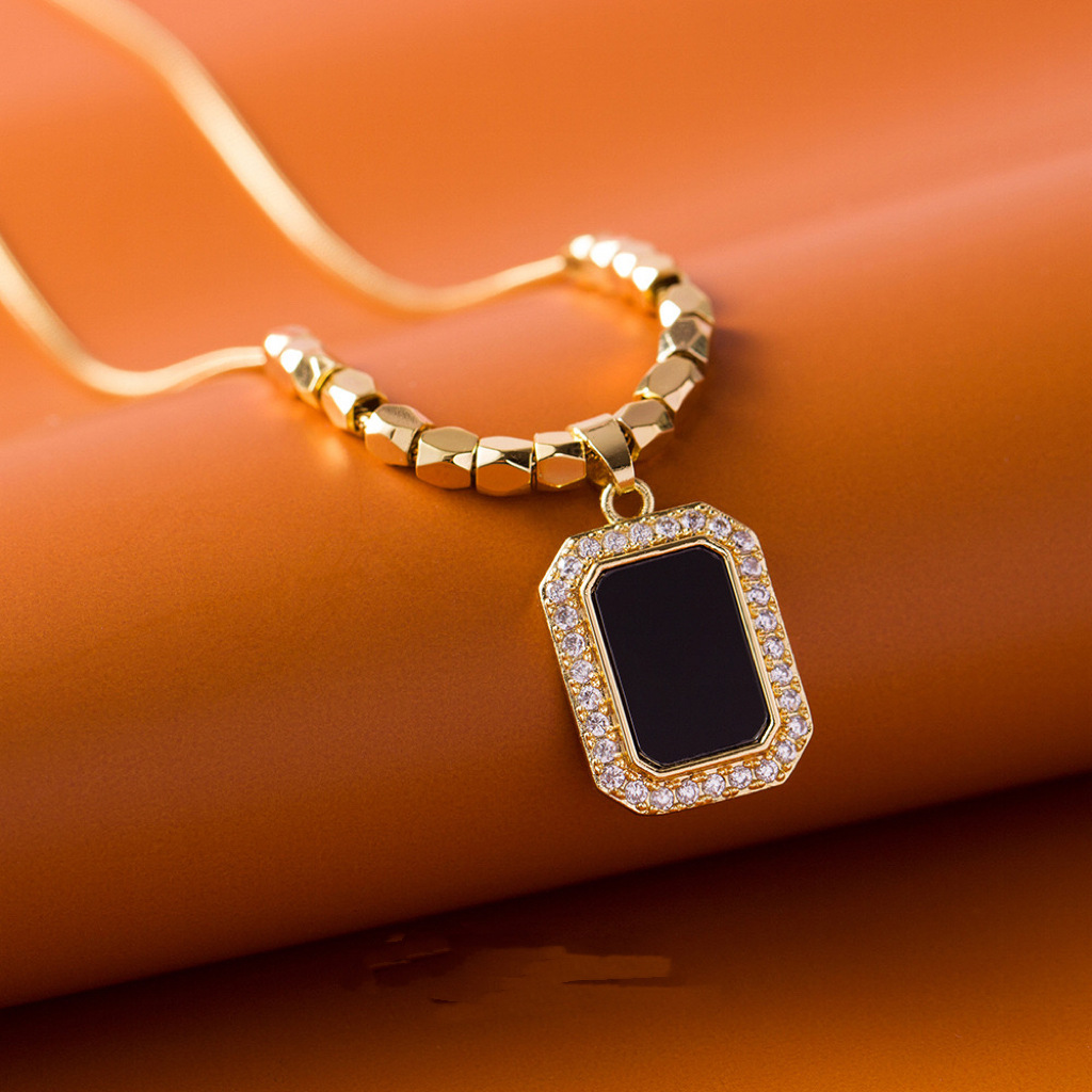 Black Square Brand Zircon Necklace Women's Fashion Light Luxury Exquisite Titanium Steel Collar Chain Niche High-grade Design Sense Jewelry