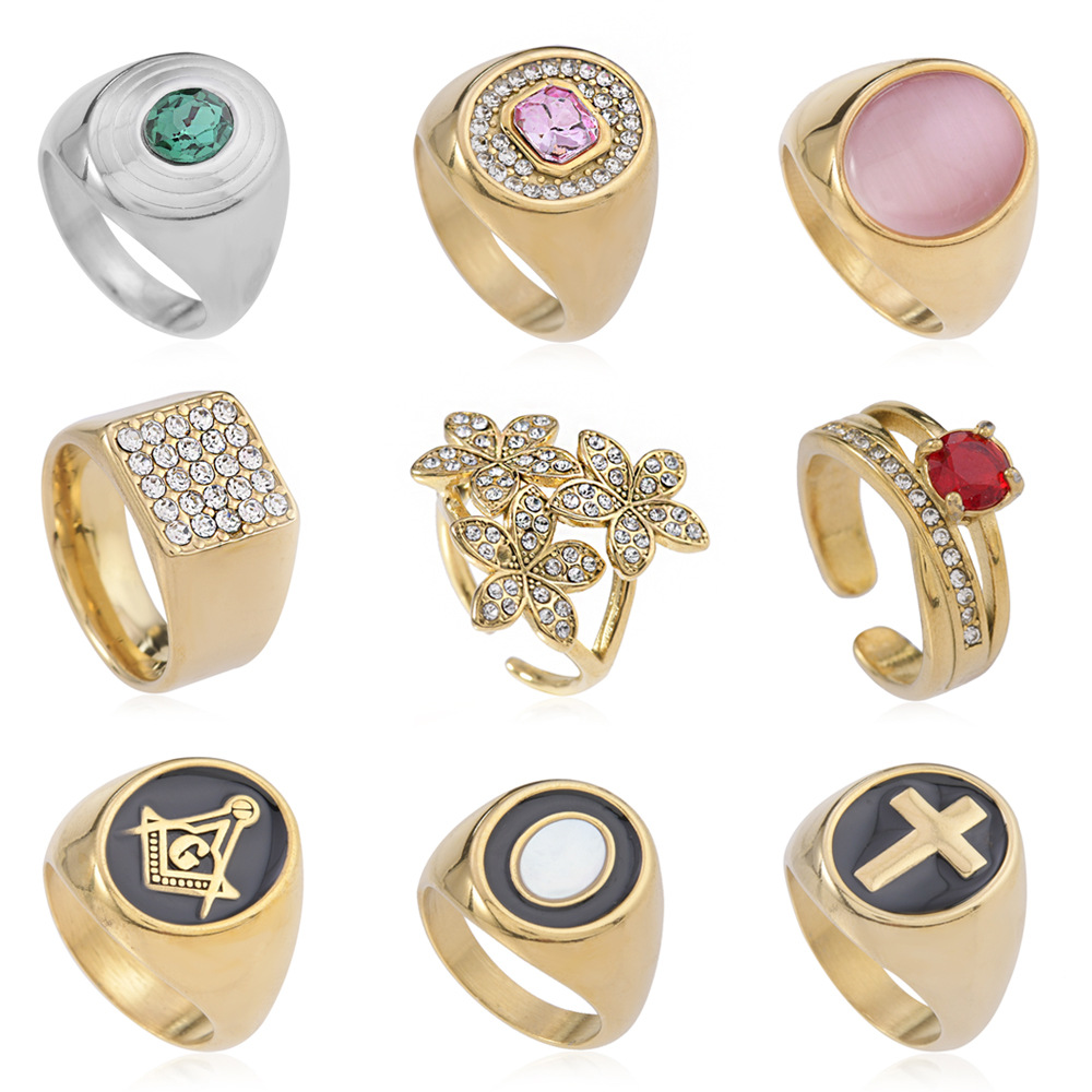 European and American Foreign Trade Cross-Border Hot-Selling Gemstone Rings Light Luxury High-End Diamond Rings Retro Rings Stainless Steel Jewelry
