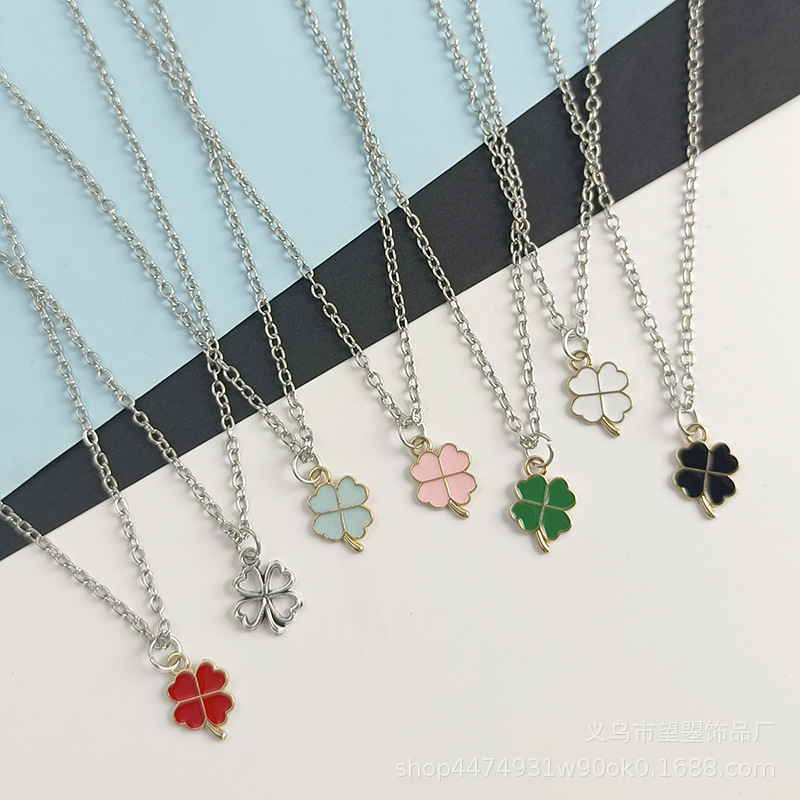 European and American Accessible Luxury Oil Dripping Cloisonné Lucky Four-Leaf Clover Necklace Single-Sided Zinc Alloy Necklace Fashionable and Versatile Bestie Style