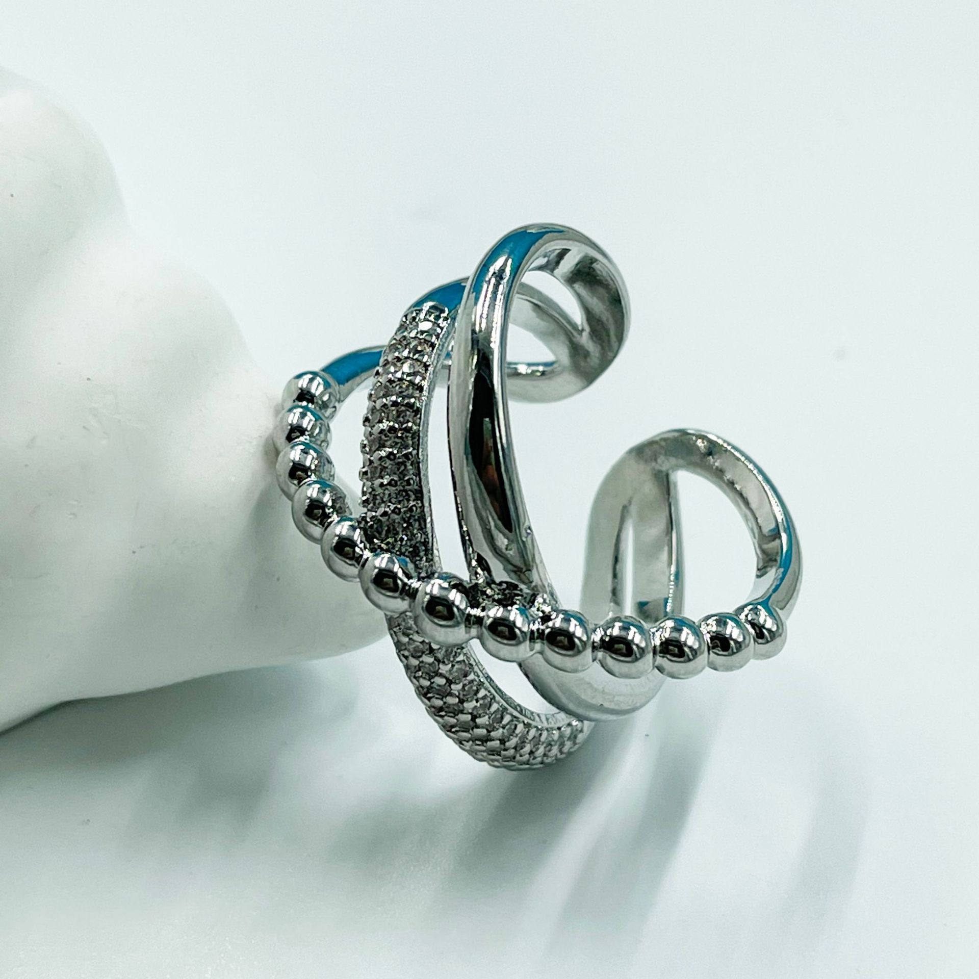 New French Retro Light Luxury Exquisite Round Bead Cross Zircon Ring for Women, Fashionable and Unique High-End Versatile Ring