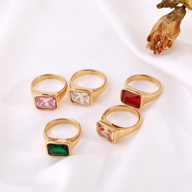Manufacturer's In-Stock European and American Cross-Border E-Commerce Jewelry, High-End Square-Shaped Elegant Women's Gemstone Stainless Steel Ring for Women