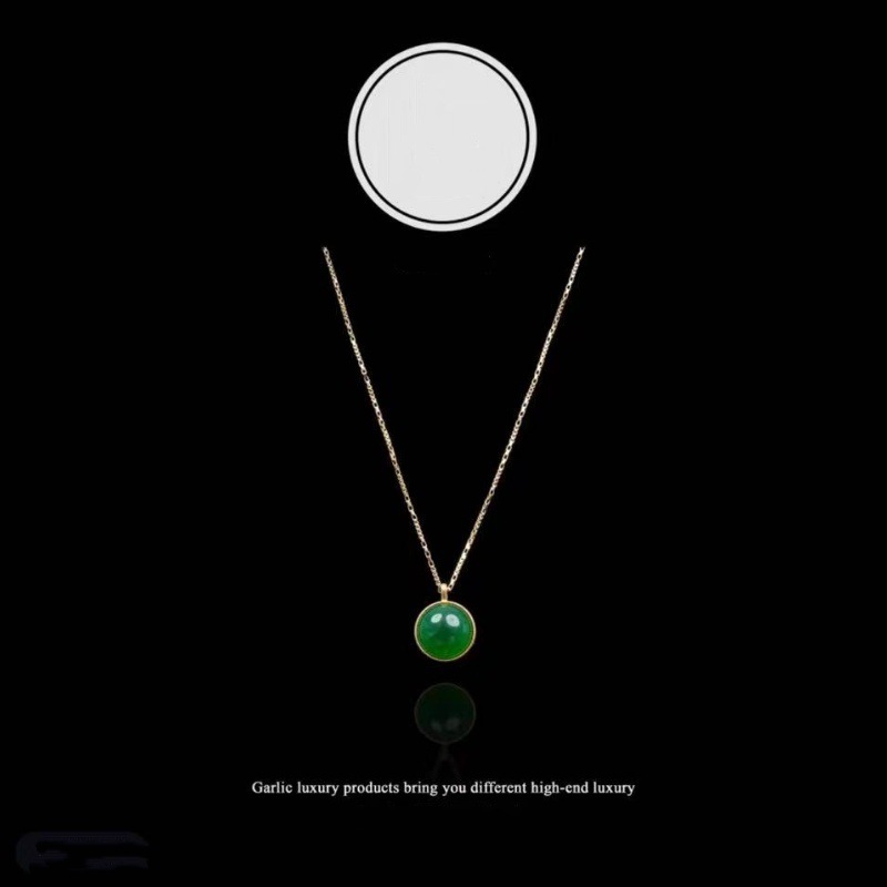 Real Gold Electroplated Emerald Chalcedony Necklace Light Luxury High-End Clavicle Chain New Chinese Style Retro Temperament Wholesale Dropshipping