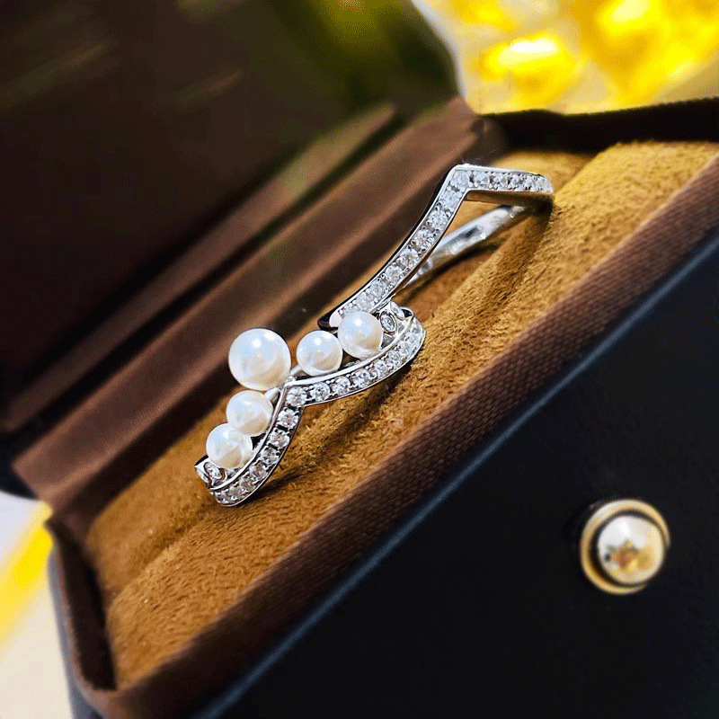 V Gold Crown Pearl Ring Light Luxury High-end Sense Josephine V Finger Ring Women's Stacked Single Row Diamond All-match V-shaped Diamond