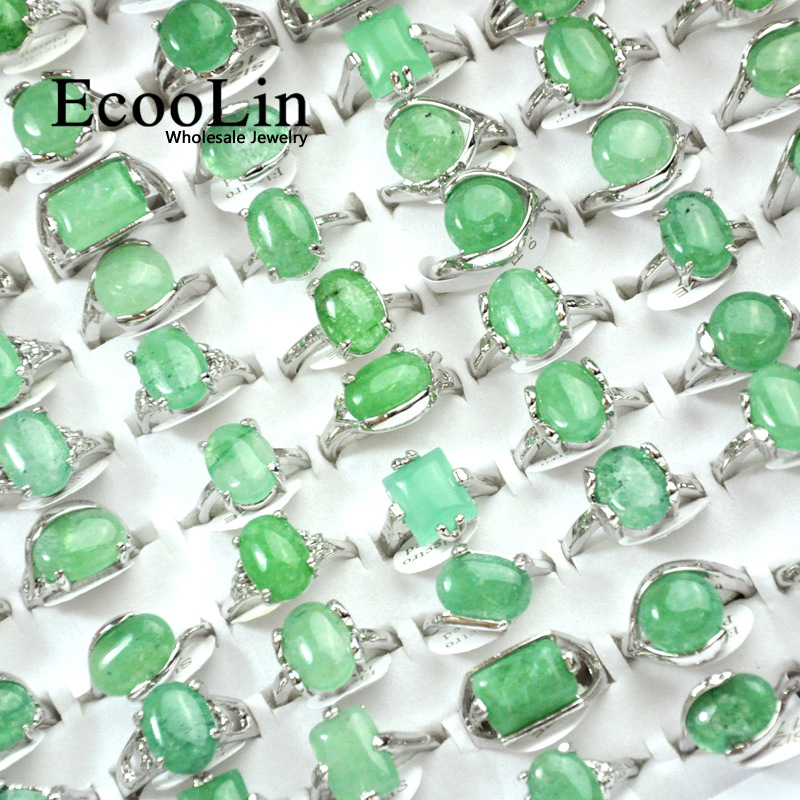 Cross-border e-commerce explosions Green spar natural gemstone silver ring women mixed batch of women's jewelry