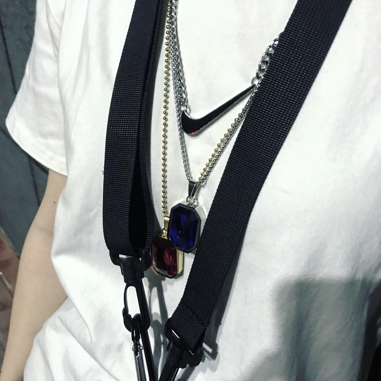 European and American style explosion titanium steel exquisite hip hop gem pendant diamond stitching mini square gem necklace set