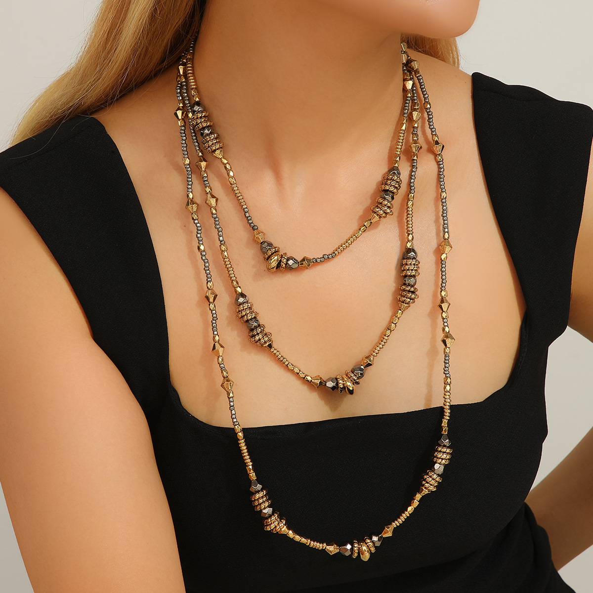 European and American Cross-Border Fashion Multi-Layer Geometric Necklace Light Luxury Retro Design Necklace