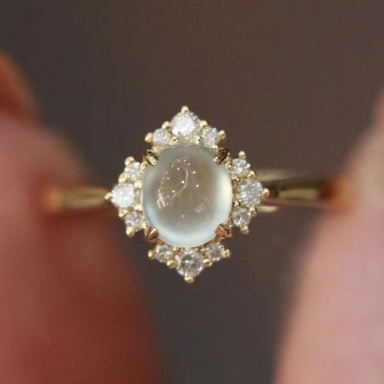 New Egg-Shaped Chalcedony Unisex Ring 18K Gold Full Diamond Inlaid Jewelry Open Elegant All-Match Bracelet