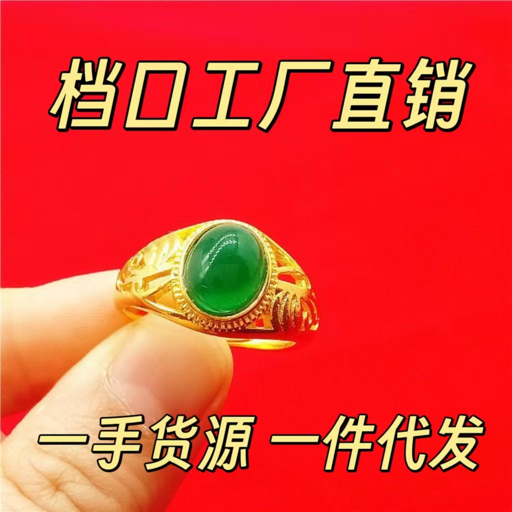 New Fashion Jewelry Brass Gold-Plated Jewelry Green Gemstone Ring Fashion Accessories E-Commerce Supply Wholesale