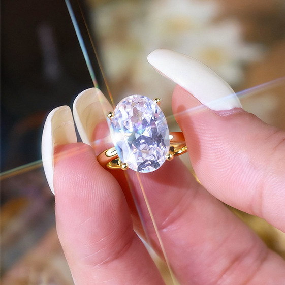 European and American Ins Style Wedding High-End Luxury Oval Zircon Series Women's Rings, Fashionable High-End Jewelry Accessories