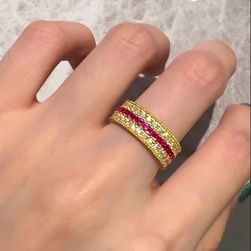 Xiaohongshu Wei Xue's Same Style Three-Row Sparkling Diamond Star Ring, High-End New Chinese Fashion, Accessible Luxury, Exquisite Luxury Women