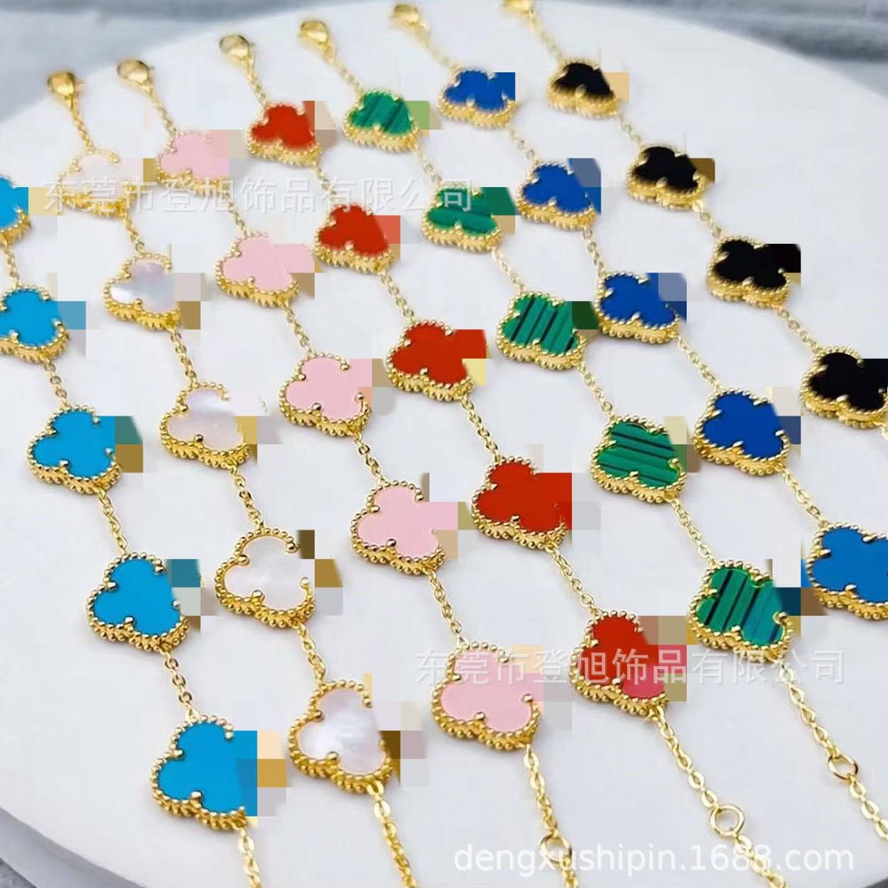 Factory Direct Supply Gold Black Agate Ten-Flower Necklace Double-Sided Four-Leaf Clover Clavicle Chain Fanzhijia Luxury Brand Wholesale