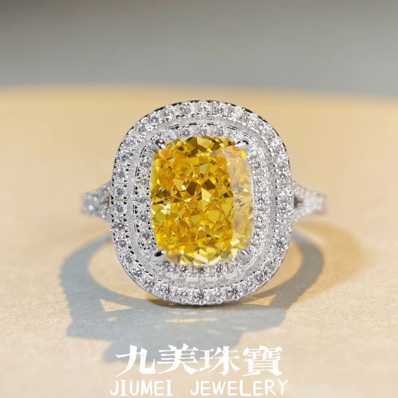 S925 Sterling Silver Ring Women's Yellow Diamond Luxury Luxury High-end Sense Generous Sugar High-carbon Diamond European and American Cross-border Live Broadcast Explosions