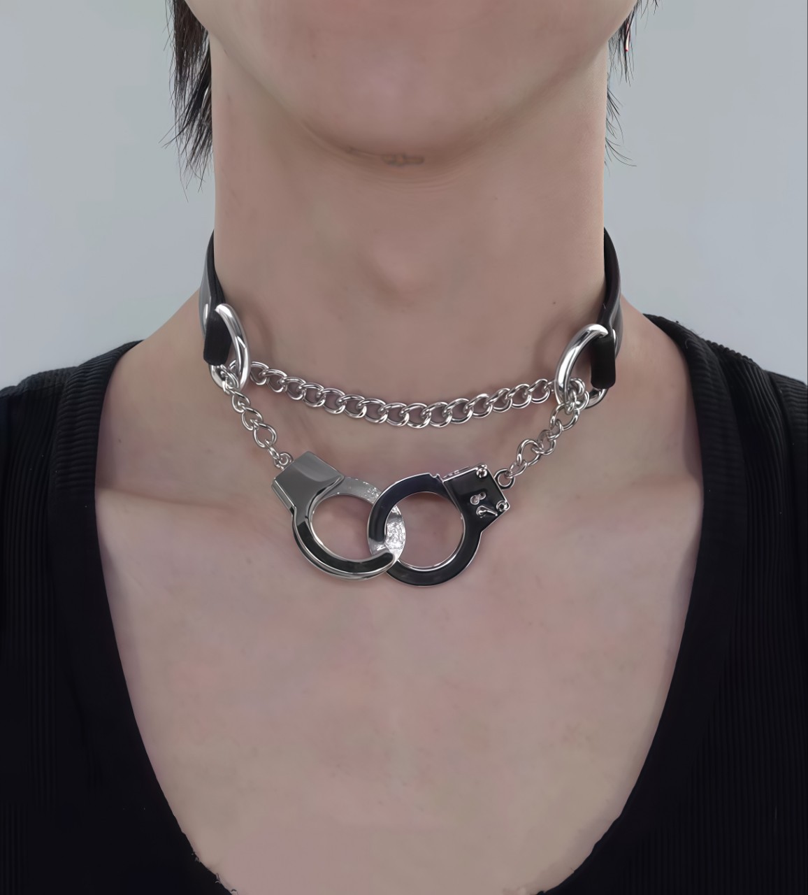 Factory direct fashion ladies ring chain black leather necklace double chain O collar clavicle chain choker