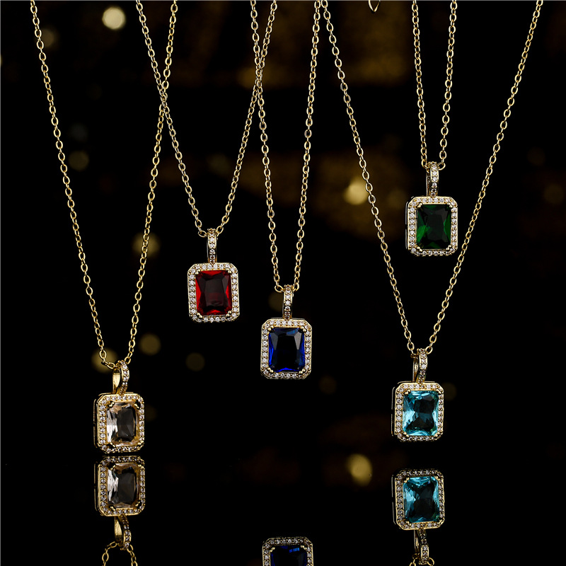 European and American Classic 5 Color Square Zircon Pendant Necklace for Men and Women Instagram Style Internet Celebrity New Cross-border Products