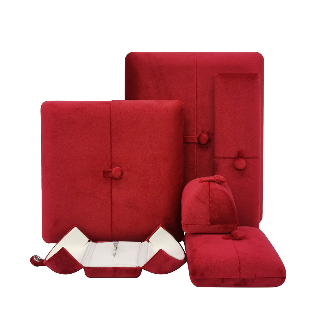 Luxury Red Jewelry Box Silk Velvet Opposition Thickened Pearl Chain Packaging Box Pendant Necklace Ring Box