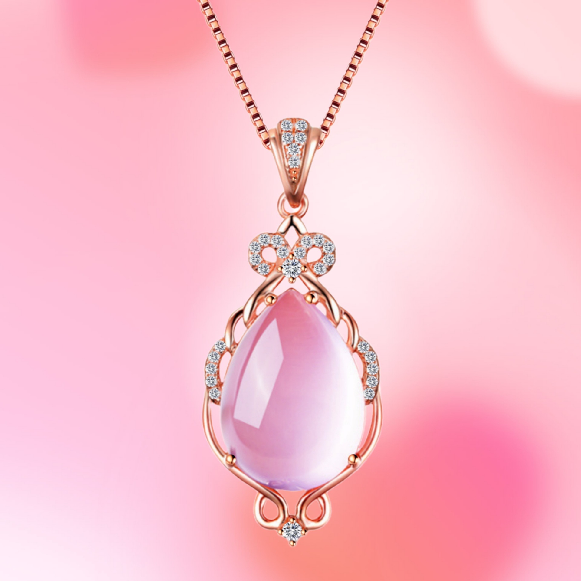 Kaiwei High-End Luxury Water Bottle Pink Diamond Pendant Necklace Natural Pink Crystal Hibiscus Stone Pendant Clavicle Chain Simple Necklace