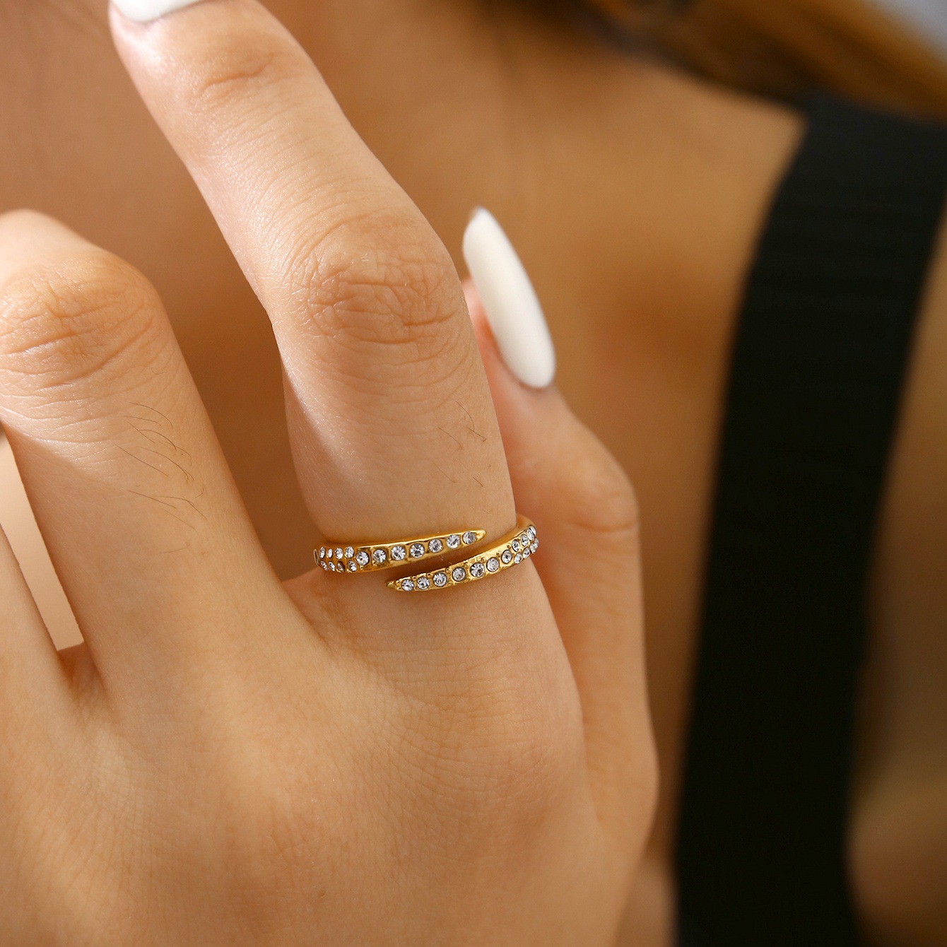 Elegant Fashion Luxury High-End Inlaid Zircon Stainless Steel Plated 18K Gold Ladies Ring Wholesale