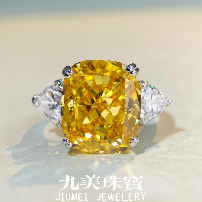 S925 Sterling Silver Ring for Women, Yellow Diamond, Luxurious, High-End, High-Carbon Diamond, European and American Cross-Border Live Broadcast Hot Style