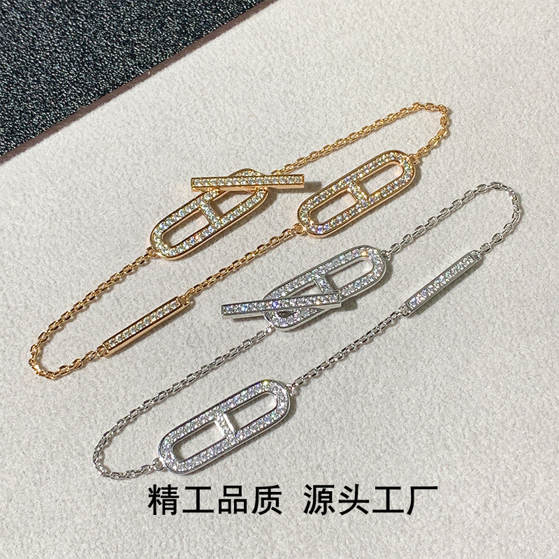 H Letter High-End Full Diamond Pig Nose Versatile Bracelet for Women, Stackable, Designer Niche, Luxury Chain