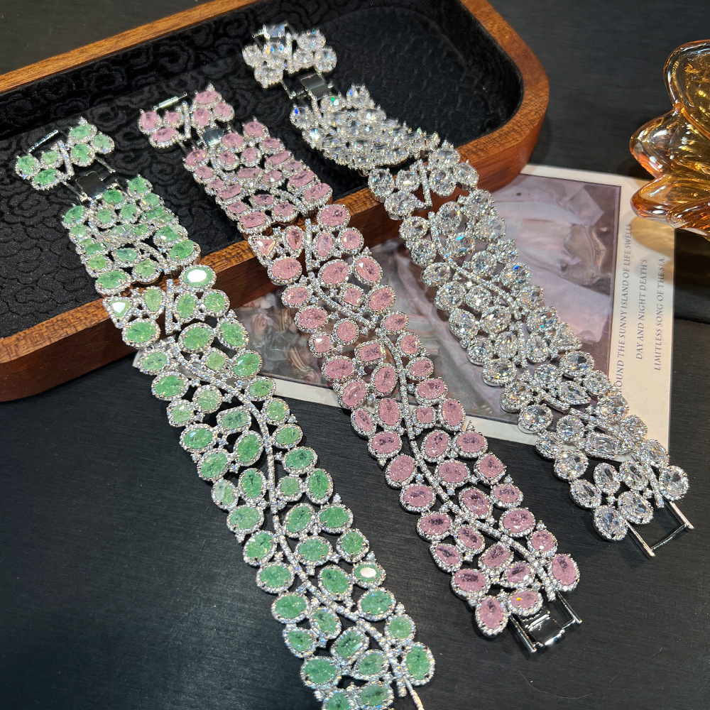 Amazon European and American Heavy Industry Full Zirconium Wide Bracelet Tk Live Jewelry Retro Gorgeous High Luxury Bracelet for Women